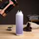 A custom personalized stainless steel water bottle in a modern soft purple gradient design. The trendy handwriting script font adds a unique touch when adding your name.