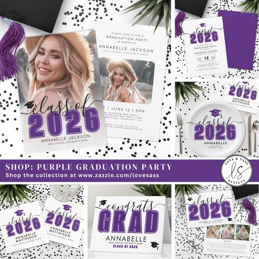 Celebrate this milestone with a stylish and personalized graduation paper plate, perfect for serving food at a graduation party. Featuring “Class of 2025” (or any year) in bold typography, the year and graduation cap icon are highlighted in a rich purple for a standout look, while the remaining text stays classic black for a clean, polished contrast. A simple black frame around the edge adds a timeless, finished touch.