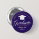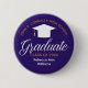 This purple and gold custom senior graduate button features chic white and gold typography under a high school or college name for the class of 2025. Customize with your graduation year and student name under the lovely calligraphy for great personalized parent buttons to wear to the ceremony. Proud mom and dad will love these buttons.