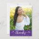 Purple Graduation Photo Modern Chic Script Hearts Thank You Card