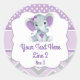 Purple Gray Girl Elephant Peanut Round Sticker
