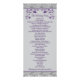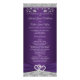 This romantic purple and silver grey floral wedding program card has an image of a pair of joined hearts overtop a purple ribbon image running across the bottom of the card. There is a simulated silver border at the top and bottom of this wedding program with a dark purple text area on the front that has the names of the bride and groom, the wedding date, and all the particulars of the wedding ceremony in gray above the ribbon. The back is grey with purple flowers arched over the wedding party details in purple. If you need any additional matching items, please email your request to niteowlstudio@gmail.com or use the Zazzle chat feature to get in touch.