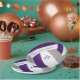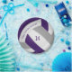 These custom volleyball birthday party paper plates feature a volleyball graphic that has purple, gray and white panels, upon which you can customize the text - by katz_d_zynes