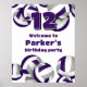 purple gray volleyballs birthday party welcome poster