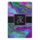 Monogrammed Colorful art. Blue, purple, green colorful digital fluid art.