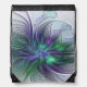Purple Green Flower Modern Abstract Art Fractal Drawstring Bag