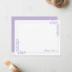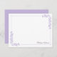 Greenery stationery cards with a charming frame in light purple against a white background. Your name in gray. Purple greenery stationery cards personalized with your name. Personalized notecards in white and purple with a greenery frame.