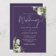 Purple Greenery Leaves Monogram Wedding Invitation