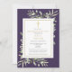 An elegant personalized celebration of life photo remembrance funeral invitation featuring botanical watercolor greenery foliage on a purple background. Designed by Thisisnotme©