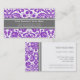 Business cards in elegant and vintage floral damask pattern in modern bright purple, white and gray. Customizable with your contact details, stylish and contemporary. Contact us for a custom color.