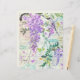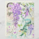 Purple Grunge Botanical Collage Scrapbook Paper. This design features collage of watercolor purple floral, green leaves, text, handwritten script, paint splatters and splashes.