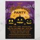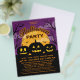 Halloween Party Event Flyer Features Black Pumpkins With Carved Faces, Moon, Clouds, Trees & Bats. Customize To Your Liking.