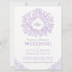 Purple hand drawn leaf monogram art wedding invitation