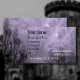 Custom business cards with grungy letters and a spooky Halloween sky with misty trees along a dark haunted road, gothic ravens and a cloudy full moon with a violet purple tint. Click Customize It to change fonts, sizing, even save your design for later.