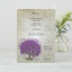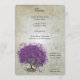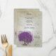 Whimsical Magical Tree of Love Purple Heart Leaf Tree on Tea Stained Warm Silver Toned Metallic Paper with an Overlay of Antique Sheet Music and some cute little swirly designs to enhance the roots of love on this unique woodland wedding invitation...