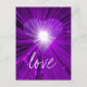 Modern design with a shining, sparkling purple and white heart on a glowing purple, white and black background. Postcard with a purple, black and white customizable design for you to personalise with your own text, images and ideas. Created by Jess Perry using original photographs and digital techniques.