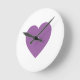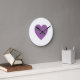 A graphic illustration of a large purple heart against a white background great design for a simple wall clock