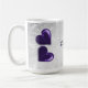 Enjoy your morning coffee with a Purple Hearts Personalized Coffee Mug. Mug design features a a pair of hearts, a soft white leafy vine against a light gray grunge background with an area to personalize with your name. Additional gift items available with this design as well as a variety of colors.