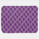 This baby blanket features a repeating pattern of purple hearts on a purple background.