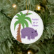 Purple Hippopotamus with a Palm Tree Ceramic Ornament