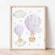Add the finishing touches to your baby’s nursery or child’s bedroom with these gorgeous art prints! Design features purple hot air balloon, animals (bunny, bear, elephant), moon, clouds and stars.