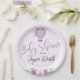 This beautiful purple hot air balloon elephant baby shower paper plate is perfect for your upcoming baby shower.