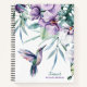 Embrace the delicate beauty of nature with this exquisite watercolor journal, a perfect blend of art and functionality. The cover features a lively hummingbird in mid-flight, its wings a blur of emerald green and amethyst purple, hinting at the bird’s swift, graceful movements. Amidst the flight, the hummingbird is surrounded by elegant botanicals, including orchids, their soft purple and white petals unfolding with yellow centers.
