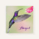 Personalized notebook featuring the beautiful violet sabrewing hummingbird flying though a cloud forest toward a pink flower. Easily personalize with a name to create a unique beautiful item for hummingbird, garden and nature lovers. Photo taken at Bosque de Paz Reserva Biologica, Valle del Rio Toro, Alajuela, Costa Rica.
