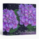 Purple hydrangeas with water reflection and raindrop pattern overlay on black