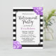 Purple Hydrangea Floral Modern Stripes Retirement Invitation