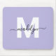 Personalized Purple Initial Monogram Mouse Pad. Add a touch of elegance to your workspace with this stylish mouse pad. Featuring a soft purple background, a crisp white initial letter, and a sleek black script name, this design is perfect for anyone who loves a clean and modern yet bold look. Ideal for sorority sisters, students, or professionals, this mouse pad makes a thoughtful gift for moms, friends, or anyone who appreciates personalized, chic accessories. Perfect for birthdays, holidays, or special occasions, it blends elegance and functionality to elevate your everyday workspace essentials.