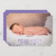 This simple and chic 1-photo birth announcement features whimsical script lettering that highlights your new arrival. Select a die-cut shape, textured paper or an ultra-thick paper for an extra special invitation. Congratulations!