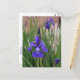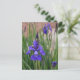 An elegant single royal purple Iris blossom against shades of pale gray and fresh green is portrayed on this beautiful photographic postcard. Irises commonly represent wisdom, faith, hope, courage and valor. The birth flower of February is the Iris suggesting loyalty and faithfulness. The Iris is also the 25th wedding anniversary flower for much the same meaning. The Iris was named for the Greek Goddess of Greek mythology who carried messages from heaven to earth on the arc of the rainbow. The Iris is one of the State flowers of Tennessee, purple colour in particular, and also inspired the fleur-de-lis design. The purple color, being the blending of cool blue and warm red, lends to the purple Iris representation of peace and harmony. Back text is customizable for your own greeting.