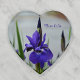 An elegant single royal purple Iris blossom against shades of pale gray and fresh green in this beautiful photographic botanical floral glass paperweight. Irises commonly represent wisdom, faith, hope, courage and valor. The birth flower of February is the Iris suggesting loyalty and faithfulness. The Iris is also the 25th wedding anniversary flower for much the same meaning. The Iris was named for the Greek Goddess of Greek mythology who carried messages from heaven to earth on the arc of the rainbow. The Iris is one of the State flowers of Tennessee, purple colour in particular, and also inspired the fleur-de-lis design. The purple color, being the blending of cool blue and warm red, lends to the purple Iris representation of peace and harmony.