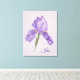 This beautiful canvas wall art has my hand drawn and colored picture of an old fashioned purple Bearded Iris. The yellow fuzzy stamens that line the petals are what gives them the distinction of being "bearded". The old nickname for this flower was Flag. Irises come in many different varieties and colors, but the purple one is the most common. The botanical name for Iris is Germanica which means Rainbow.
