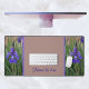 Elegant royal purple Iris blossom and bud among green leaves on the sides of an earthy deep coral desk mat. This beautiful photographic botanical floral desk mat can be personalized with a Name.. Irises commonly represent wisdom, faith, hope, courage and valor. The birth flower of February is the Iris suggesting loyalty and faithfulness. The Iris is also the 25th wedding anniversary flower. The Iris was named for the Greek Goddess of Greek mythology who carried messages from heaven to earth on the arc of the rainbow. The Iris, purple Irises in particular, is one of the State flowers of Tennessee and also inspired the fleur-de-lis design. The purple color, being the blending of cool blue and warm red, lends to the purple Iris representation of peace and harmony.