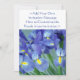 Color floral photograph of purple iris flowers in a flower vase. Personalize this purple irises flower invitation with your own message and images to make your own special flower invites.