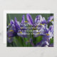 Color floral photograph of purple iris flowers in a flower vase. Personalize this purple irises flower invitation with your own message and images to make your own special flower invites.