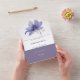 This design showcases a stunning watercolor purple iris flower, capturing the intricate details of each petal with soft brushstrokes and a gentle color palette. The rich shades of purple are complemented by subtle hints of green and yellow, giving the design a natural and calming feel. The iris is a symbol of deep sentiment, respect, and admiration, making it a perfect choice for special occasions such as weddings and anniversaries. Whether used on invitations, menus, or other stationery, this design is sure to add a touch of elegance and sophistication to any event.