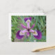 This postcard features a photograph of a purple Iris. The photo was taken using macro photography for a detailed result. This beautiful flower blooms every year in my garden pond and always makes me smile.