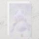 A fully customizable stationery print featuring a surface blurred background image of a purple iris blended and fade-tilled to leave a complete legible open page for writing your personal notes and letters