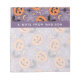 This design features a vibrant Halloween pattern with a playful and cute design. The pattern showcases bright orange jack-o'-lanterns with various cheerful and friendly expressions. These pumpkins are surrounded by a purple background filled with white spiderwebs, black bats, crescent moons, stars, candy corn, and small spiders. The overall theme is fun and festive, making it perfect for a lighthearted Halloween decoration or themed design. The color palette is a mix of traditional Halloween colors—orange, black, and purple—with added touches of white and yellow for contrast.