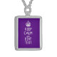 Purple Keep Calm And Your Text Easily Sterling Silver Necklace