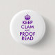 Purple Keep Clam and Proof Read Pinback Button