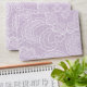 Pretty white lace on a purple background. This lace pattern is perfect for a purple themed wedding.