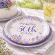 Celebrate 50 fabulous years with these elegant floral birthday paper plates featuring soft lavender and purple watercolor florals with delicate butterfly accents. A beautiful and feminine touch for milestone birthday tables and dessert displays.