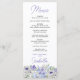 Menu with watercolor floral design with flowers in shades of purple lilac lavender blue. Elegant modern wording and girly, airy vibe. Please browse my Purple Peri Floral collection for co-ordinating quinceanera invitations, stationery and day-of-event decor or, message me to create the templates you need.