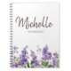 Beautiful purple lavender watercolor flowers on white custom spiral notebook, personalized with a first and last name. Contact us for help with customization or matching products.
