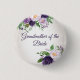 Beautiful plum purple and soft lavender watercolor floral and greenery on botanical white "Grandmother of the. Bride" button.