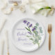 Bridal Shower Paper Plate. This design features a watercolor illustration of Purple lavender flowers and eucalyptus foliage. Personalize with your name and date.